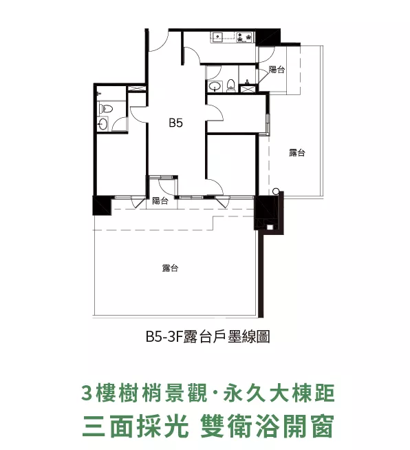 • 三面採光,雙衛浴均有開窗