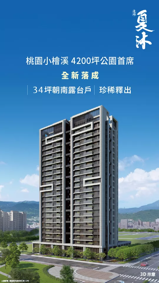 「遠雄夏沐」座落春日路、民光東路千坪雙主幹道角地,未來商業價值與發展潛力現正蓄勢待發,基地正對4200坪音樂之林公園,一綠之隔即22公里南崁溪水岸,鄰近萬坪中心商業區,由北市十大豪宅巨擘呂建勳建築師,擘劃地上22層、地下3層建築,規劃34至48坪、邊間三房產品,以一座建築儲釀城市與自然,定席市中心擎天獨一美的高度與品味。