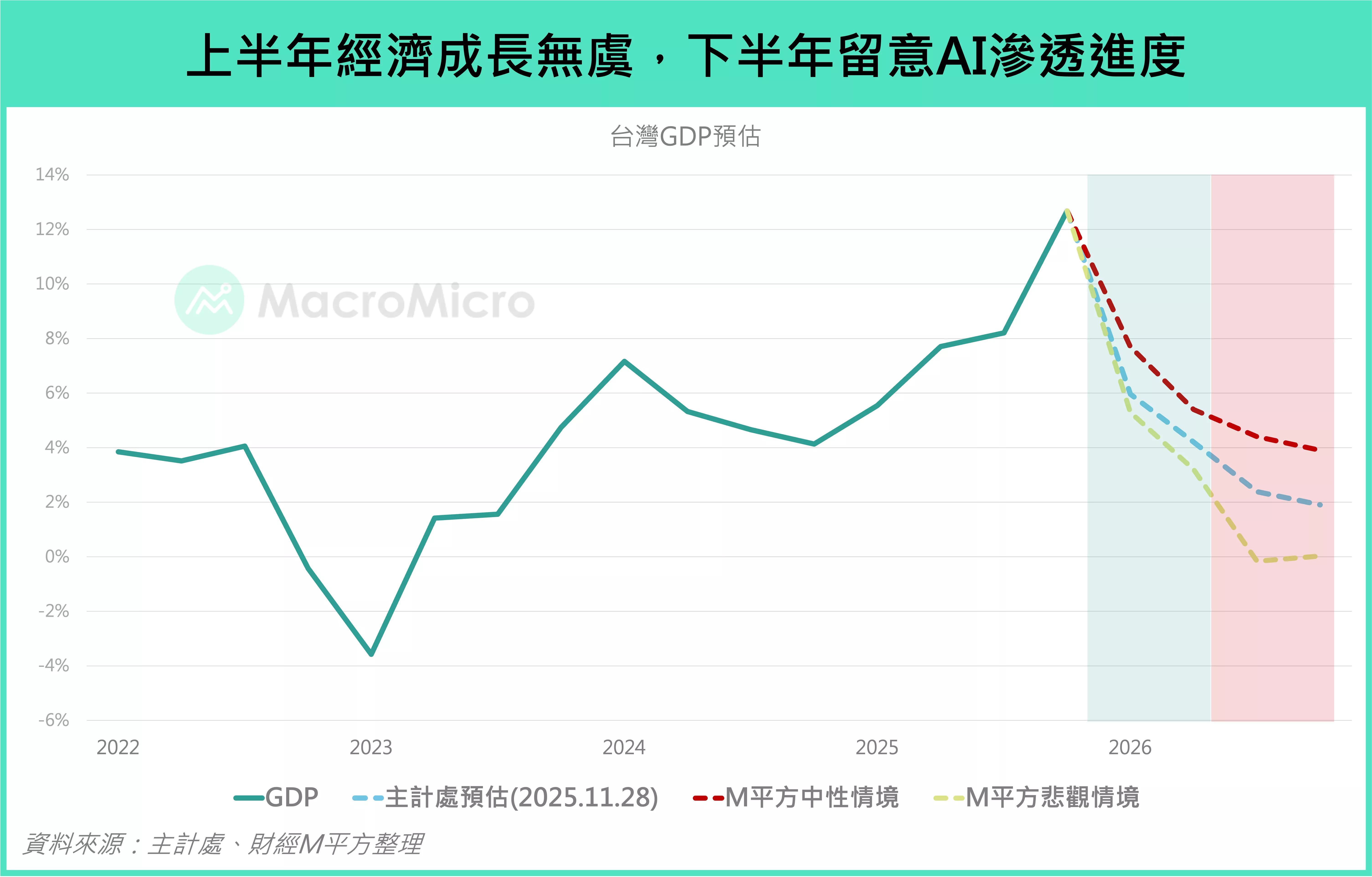 ▲上半年經濟成長無虞,下半年留意AI滲透進度。資料來源:財經M平方